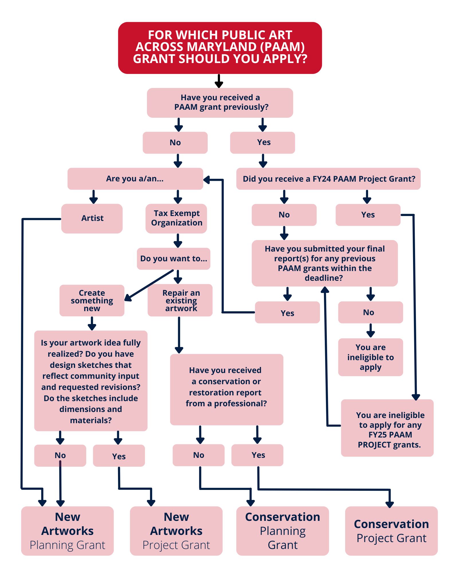 Public Art Across Maryland New Artworks applications are due on December 19, 2024. Please refer to the flow chart below to confirm eligibility.